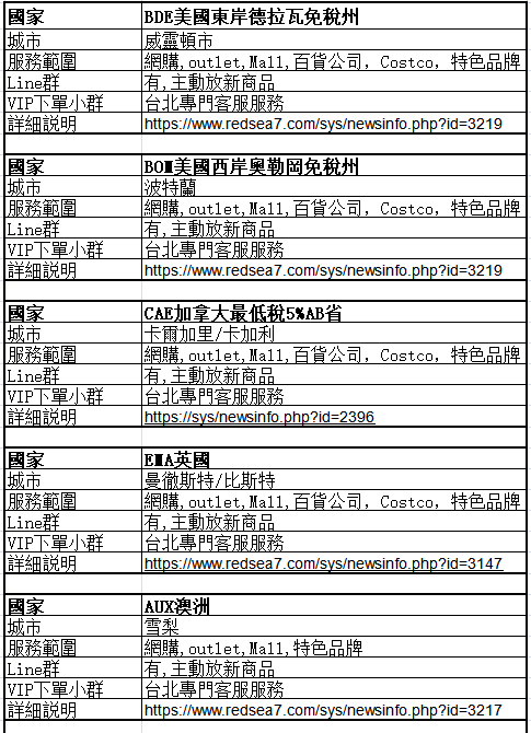 8.韓國/澳洲 Line:全球各國商品群